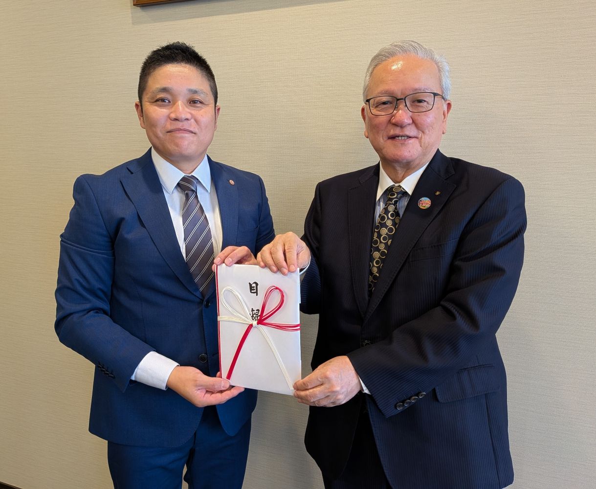 2日に開催した「青少年育成チャリティー第4回オープントーナメント県空手道選手権大会」の収益の一部を寄付したとのこと。大会は2019年から2年に1回開かれており、寄付は4回目。吉田支部長は「来年からは毎年大会を開催する予定で、定着した支援ができたら」と話されました。ご支援ありがとうございます。